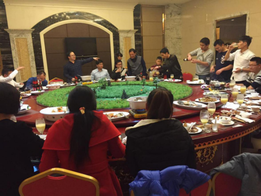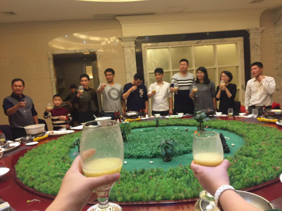 大家舉杯同慶,2016已將過去,展望2017,未來是美好的,干了這杯,2017同心同行,勇攀高峰。大家把酒迎歡,其樂融融,在黃總指點(diǎn)江山的手勢下,大家好像要一決高下的架勢,當(dāng)然還是有少許的吃瓜群眾,不用當(dāng)心,下一個(gè)將會(huì)是你們。