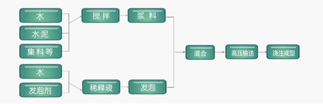 現(xiàn)澆泡沫混凝土生產(chǎn),在施工現(xiàn)場(chǎng)采用自動(dòng)化設(shè)備現(xiàn)場(chǎng)發(fā)泡制作、機(jī)械化泵送到作業(yè)面,直接澆注,自然養(yǎng)護(hù)成型,施工成本低。